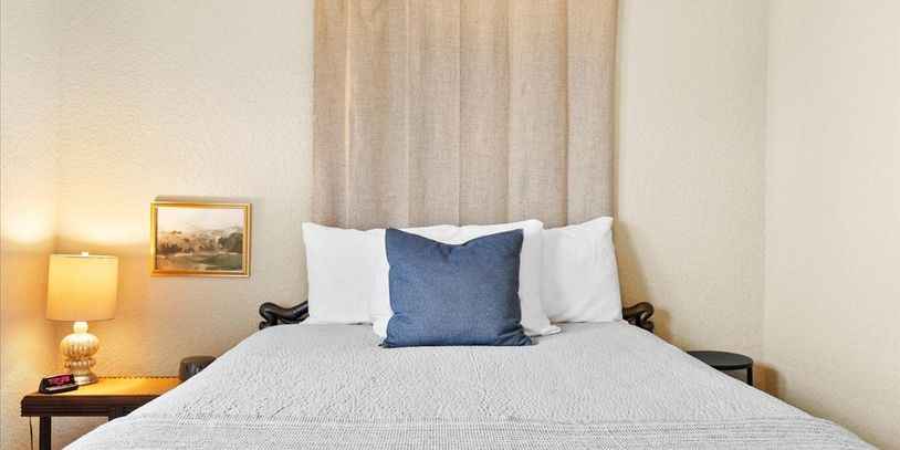 ✪ Queen size hybrid pillow top beds in each room (two queens in the back bedroom suite) covered in Premium, crisp, Certified Organic cotton sheets and quilts.