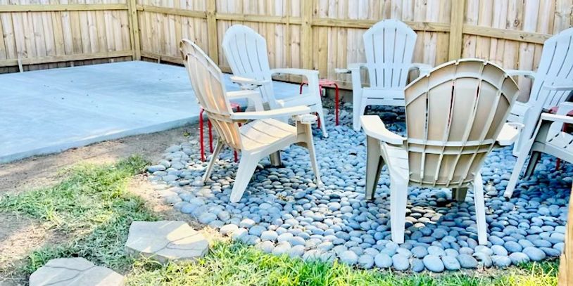 ✪ The backyard is fully fenced in with outdoor seating, a patio area, a grill & grill area and string lights for a little extra ambiance.